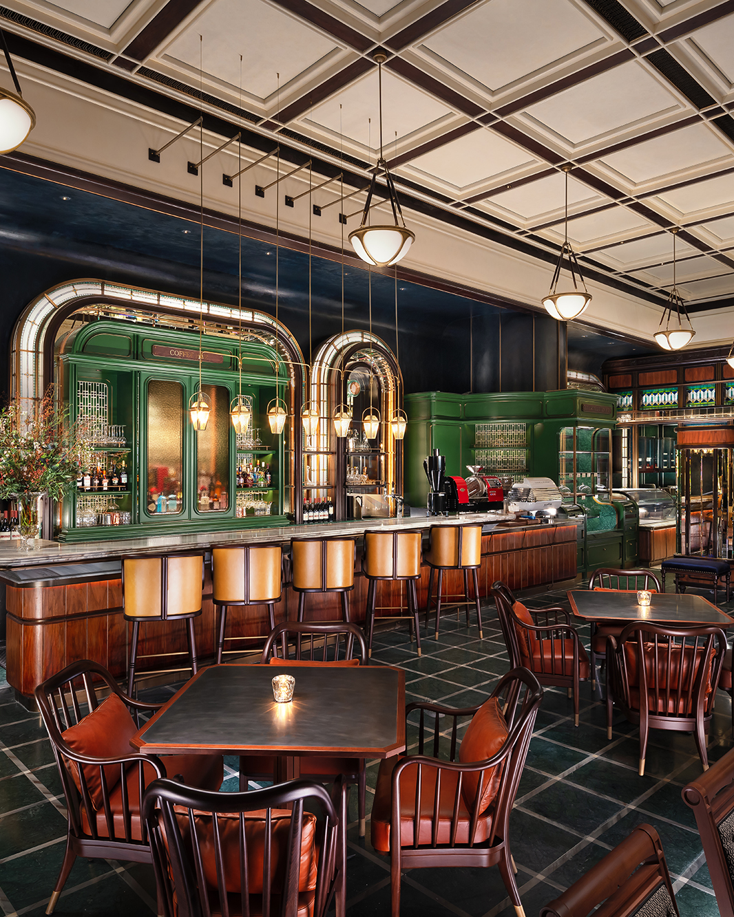 The plush modern interiors of Jiang Nan by Jereme Leung, featuring custom-made tableware, artwork, and floor-to-ceiling partitions in an antique wooden birdcage design, provide a perfect setting for the sophisticated cuisine. Overlooking a dramatic show kitchen, the main dining area creates an immediate impression of glamour and vintage luxury. With seating for more than one hundred guests, the restaurant has four private dining rooms that can be merged into two larger function spaces. An extensive collection of bespoke artwork and vintage Art Deco jukeboxes from a bygone era in Shanghai highlight the city’s rich heritage of shikumensthat blend characteristics of traditional Chinese components with Western cultural elements and design.